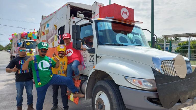 Tamaulipas.- Más de 100 trabajadores de limpieza, decoraron 16 camiones recolectores para recorrer más de 120 colonias y llevar alegría y dulces a los niños y niñas; pero también recoger la basura.