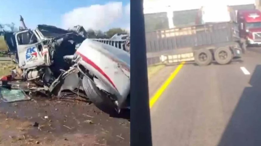 Los remolques del tráiler terminaron obstruyendo parcialmente la autopista, mientras que la cabina del camión quedó destrozada.