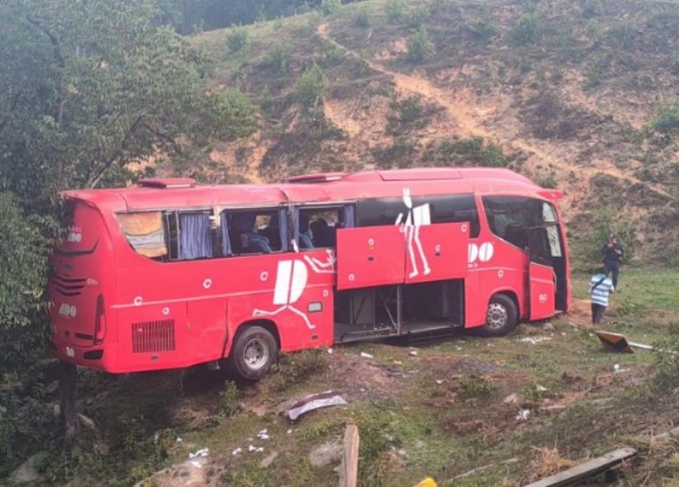 Hidalgo.- Un camión de pasajeros de la línea ADO que había salido de la Ciudad de México con destino a la ciudad de Tampico en el estado de Tamaulipas, sufrió un fuerte accidente al caer a un barranco cuando transitaba sobre la carretera México-Tampico a la altura de la comunidad de Molocotlán ubicada en el municipio de Molango en el estado de Hidalgo.