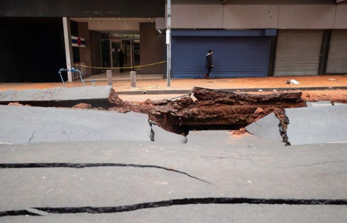 Reported gas explosion causes cracks in crowded Johannesburg street https://t.co/7coyBVqA1E pic.twitter.com/yvNNymLxrS