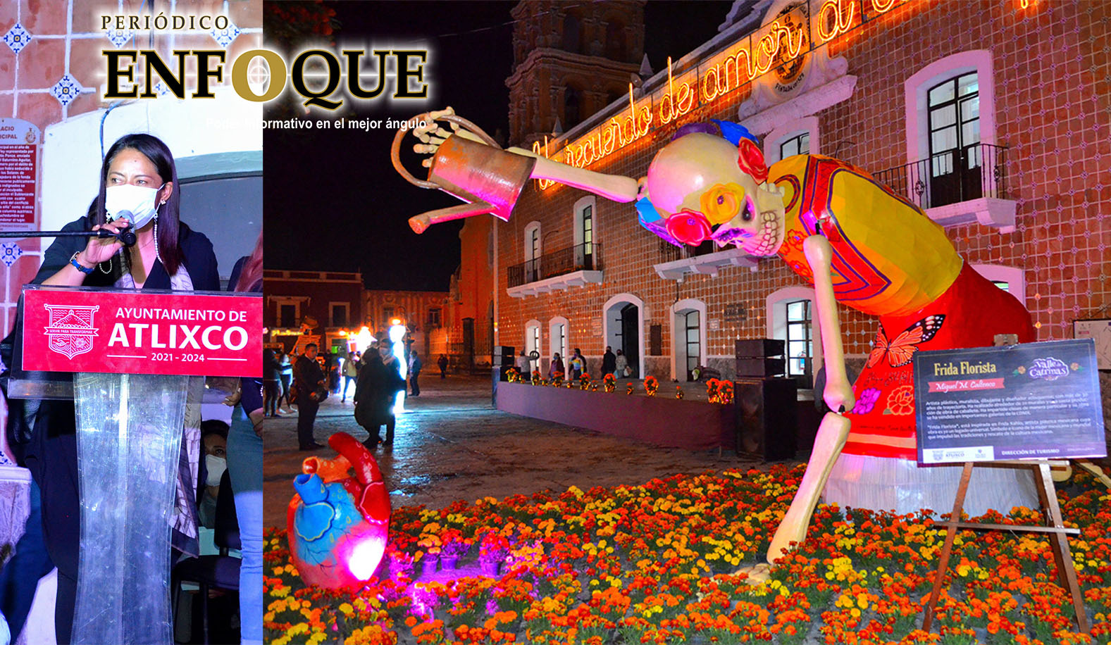 Atlixco, Puebla, México. Ariadna Ayala Camarillo, Doctora y Presidenta Municipal de Atlixco, Inauguró el “Festival Valle de Catrinas”, el 22 de octubre 2021 a las 08:30 de la noche.