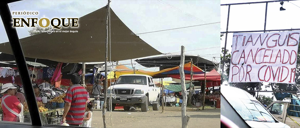 Puebla, Puebla, México. Con un muy rudimentario letrero, cancelaron el “Tianguis 4 caminos”, rumbo a Calpan, Puebla, este 09 Abril de 2020, pero sin embargo les valió la contingencia COVID-19, así como las recomendaciones de la Secretaría de Salud y el decreto del gobernador de Puebla, Luis Miguel Gerónimo Barbosa Huerta. Dicho decreto entró en vigor desde el 23 de marzo de este 2020. México está en fase 2.