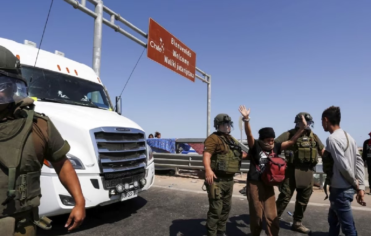 Las imágenes de televisión desde la zona mostraron el jueves a un grupo de inmigrantes que se lanzó a correr por la arena del desierto hacia Perú, pero fueron devueltos a la zona chilena por policías peruanos.