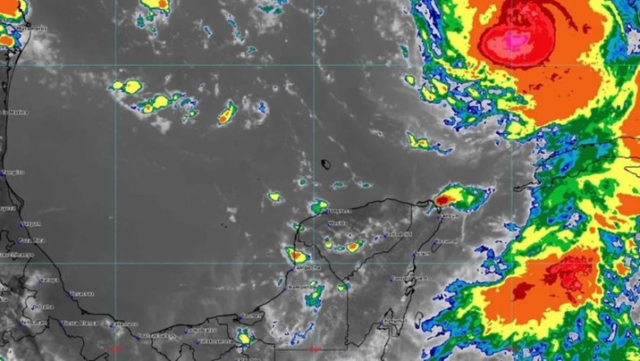 La Comisión Nacional del Agua compartió que el centro del huracán se encuentra a 550 kilómetros al nornoreste de Cabo Catoche, en Quintana Roo. Y que actualmente se desplaza hacia el norte a 26 kilómetros por hora.