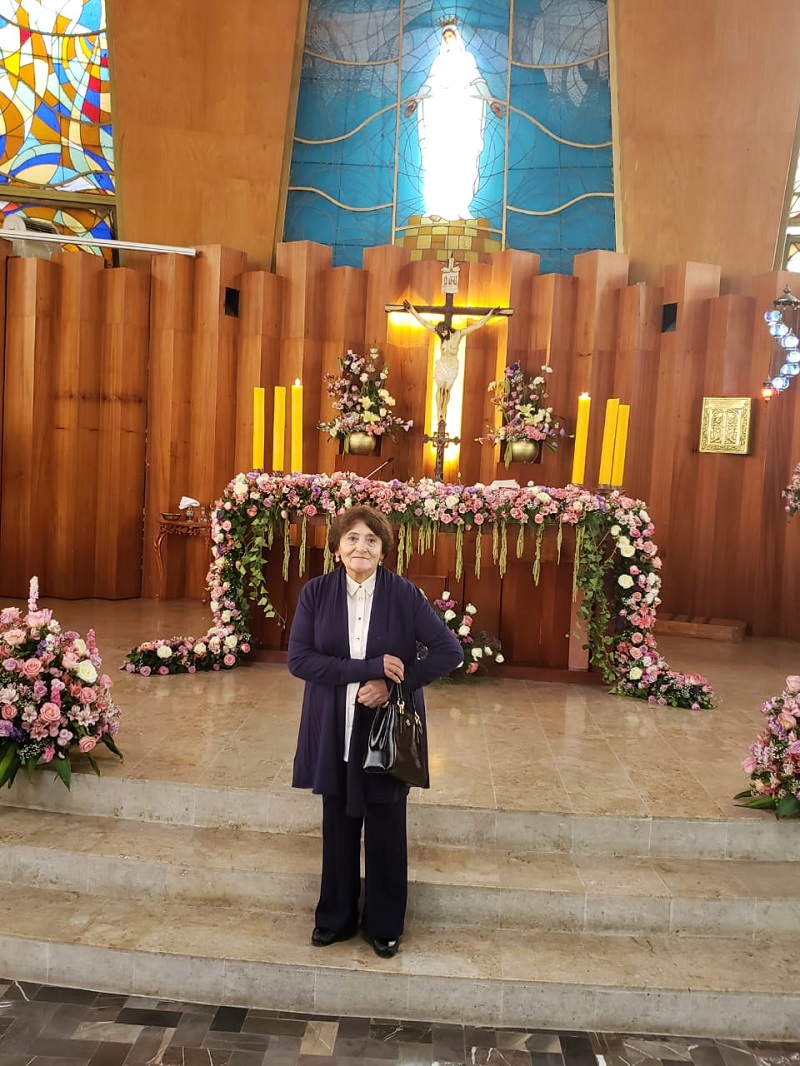 El cumpleaños oficial es el día de mañana miércoles 24 de julio, pero aun así con mucho cariño le fue realizada una misa de acción de gracias en la Parroquia de Nuestra Señora de Líbano, posteriormente fue acompañada en una recepción ofrecida cerca del Centro Mexicano Libanes; entre los invitados que la acompañaron se encontraban los amigos cercanos de la maestra y familia como sobrinos, nietos, hijos, etc.