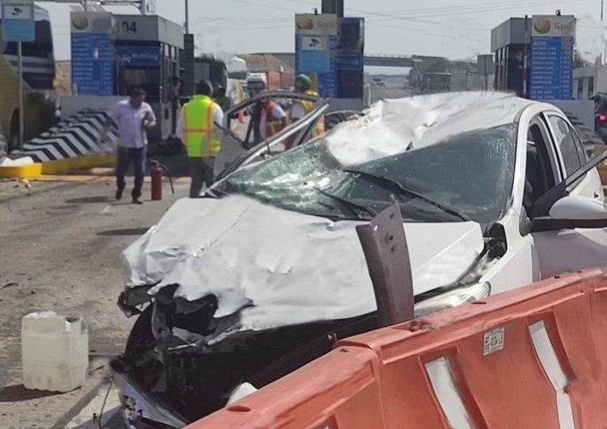 Dos autos compactos chocaron al llegar a la caseta y resultaron con pérdida total.