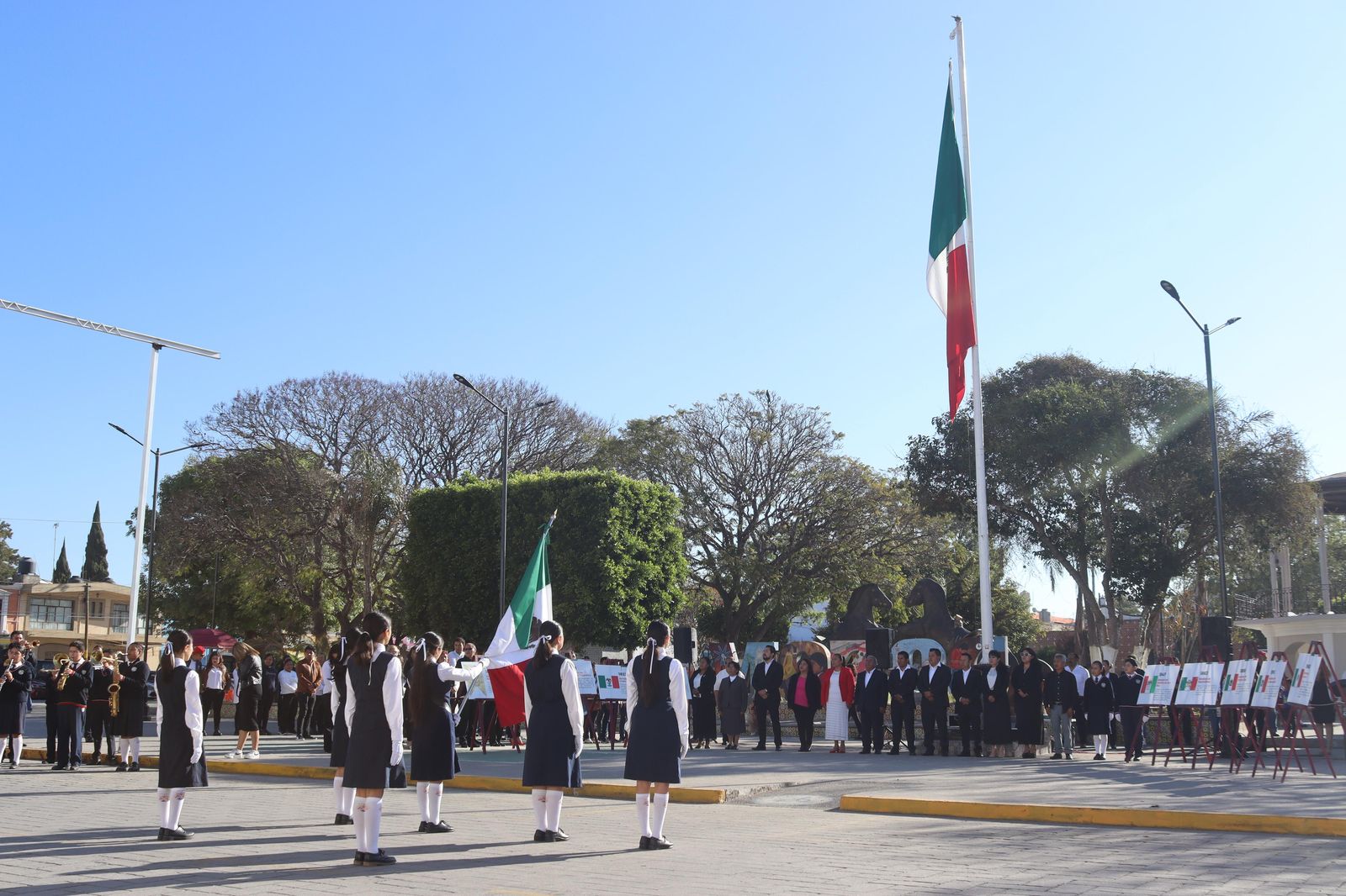 La ceremonia también contó con la participación de la Banda de Música de la Primaria Enrique Sánchez Paredes y la Banda de Guerra de la Escuela Telesecundaria Xicoténcatl, quienes con su interpretación añadieron solemnidad al acto, así como la participación de alumnos que declamaron con orgullo su sentir a la bandera tricolor.