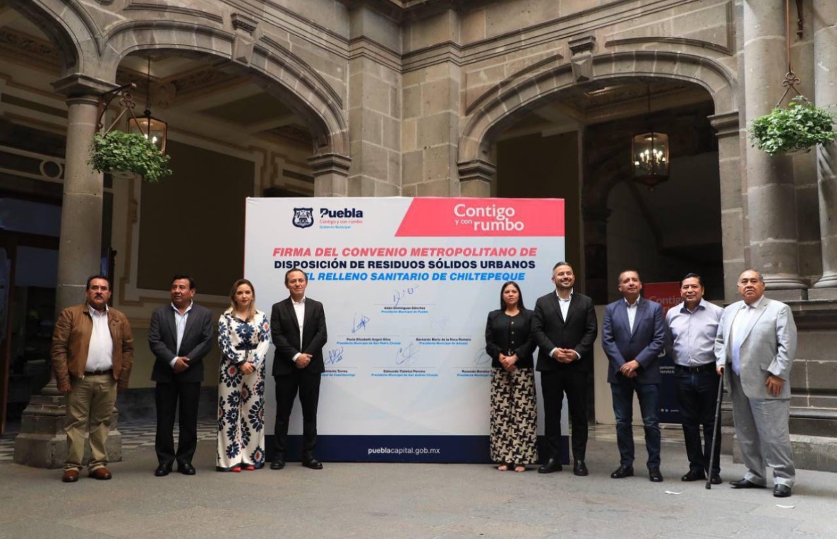 Amozoc, Pue.- Las y los presidentes municipales de Puebla, Amozoc, Huejotzingo, San Pedro y San Andrés Cholula, Coronango, Ocoyucan y Cuautlancingo, firmaron el convenio metropolitano de disposición de residuos sólidos urbanos en el relleno sanitario de Chiltepeque por el periodo de julio a octubre del presente año.
