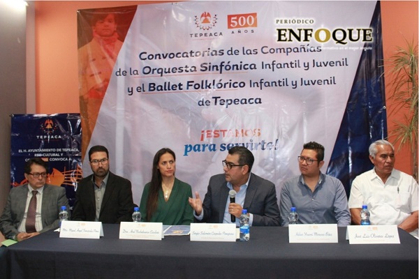 Tepeaca, Puebla. Con motivo de los festejos de los 500 años de la fundación de Tepeaca, el Ayuntamiento anunció la creación de las compañías de Ballet Folklórico y Orquesta Sinfónica Infantil y Juvenil de Tepeaca, además lanzó convocatoria para dirigirlas.