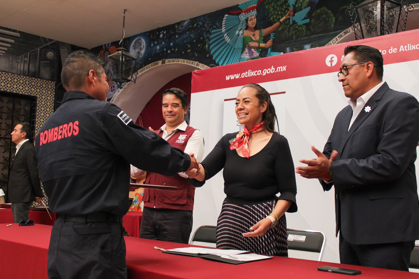 Atlixco, Pue.- En el marco del Día Nacional del Bombero, la presidenta del municipio de Atlixco, Ariadna Ayala, reconoció la labor, valentía, entrega y compromiso del Heroico Cuerpo de Bomberos, a quienes también entregó un incentivo por su destacada participación en el combate al fuego de un negocio en el centro de la ciudad.
