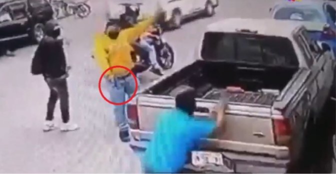 A través de un video que circula en redes sociales, se aprecia por un momento cuando el hombre afectado intentó enfrentar a los asaltantes, pero al ver que uno de ellos sacó la pistola, se va para atrás de una camioneta y trata de cubrirse.