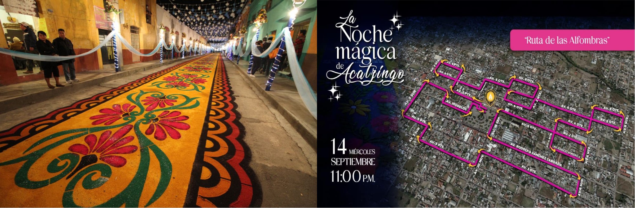 Con la presencia del actual presidente de la Junta de Gobierno y Coordinación Política de la LXI Legislatura del Congreso del Estado, Sergio Salomón Céspedes Peregrina y el presidente municipal de Acatzingo, Abraham Martínez Jiménez, quien informó que la Noche Mágica es el recorrido de la Virgen de los Dolores, la cual tradicionalmente la imagen avanza ocho kilómetros de calles adornadas de flores y alfombras.