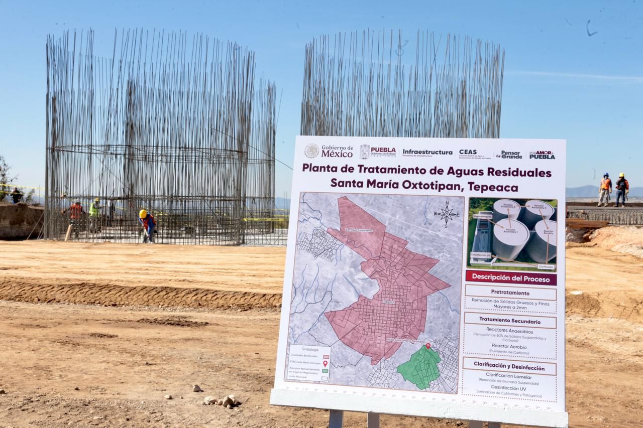 Tepeaca, Pue.- En gira de trabajo por el municipio de Tepeaca, el gobernador poblano, Alejandro Armenta Mier, acompañado por la directora de la Comisión Estatal de Agua y Saneamiento del Estado de Puebla (CEASPUE), Rebeca Bañuelos; autoridades municipales y auxiliares, supervisaron el avance de la construcción de la planta de tratamiento de aguas residuales en la comunidad de Santa María Oxtotipan.