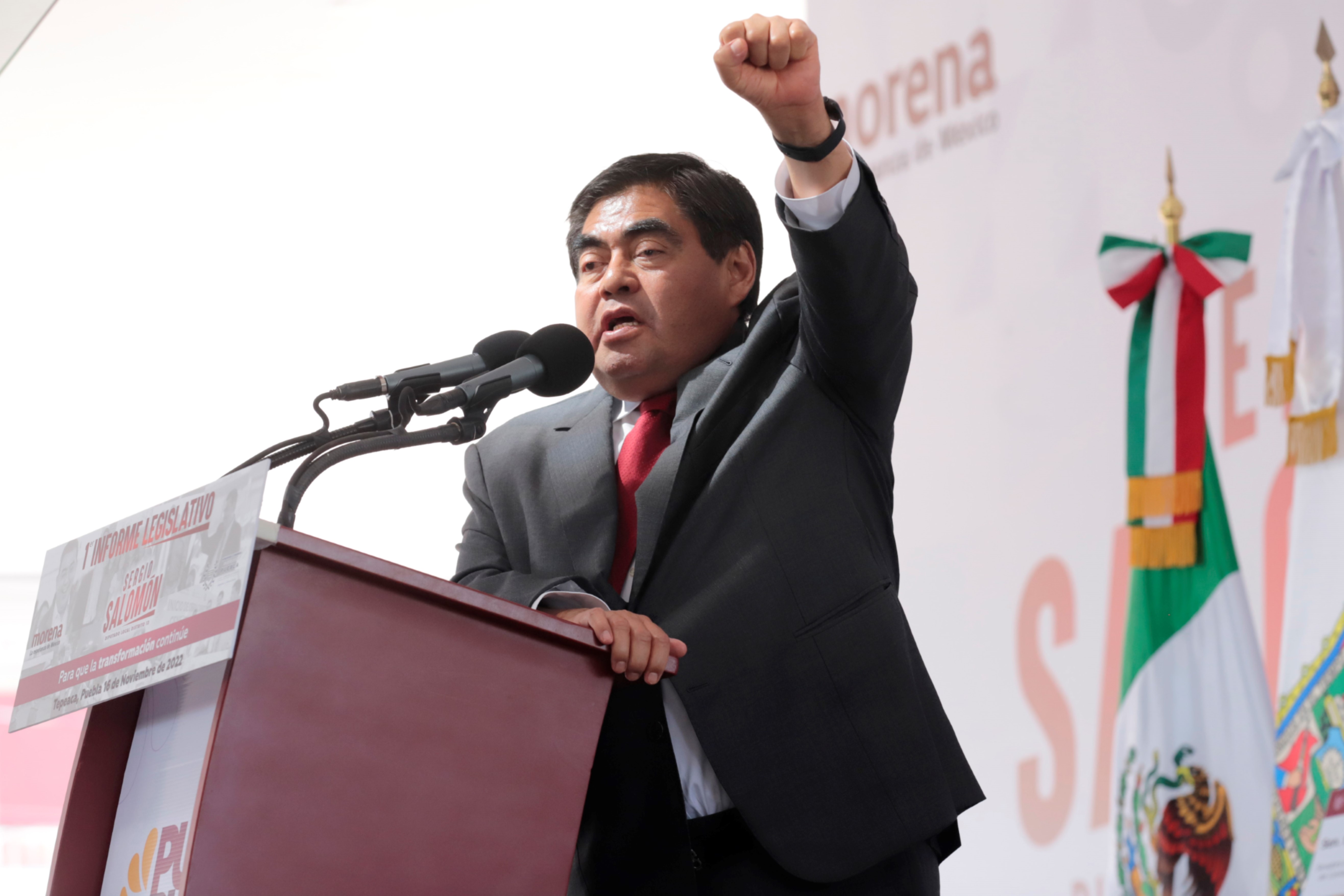 Tepeaca, Pue.- El gobernador del estado de Puebla, Miguel Barbosa Huerta quien acudió al primer informe legislativo del diputado local por el distrito 13, Sergio Salomón Céspedes Peregrina, anunció que acompañará al presidente de México, Andrés Manuel López Obrador a la marcha que se realizará en la capital el país el próximo 27 de noviembre del 2022.