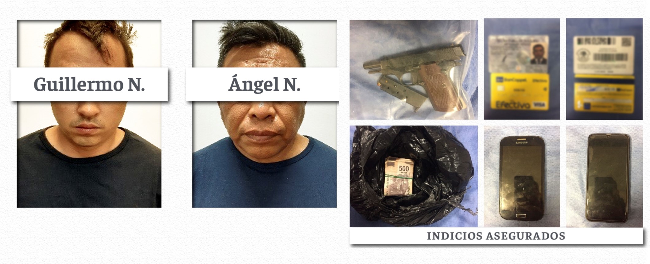Derivado de un operativo, elementos de la Fiscalía Especializada en Investigación de Secuestro y Extorsión, detuvieron a Guillermo N. y Ángel N., este último es ex personal de la Secretaría de Marina.