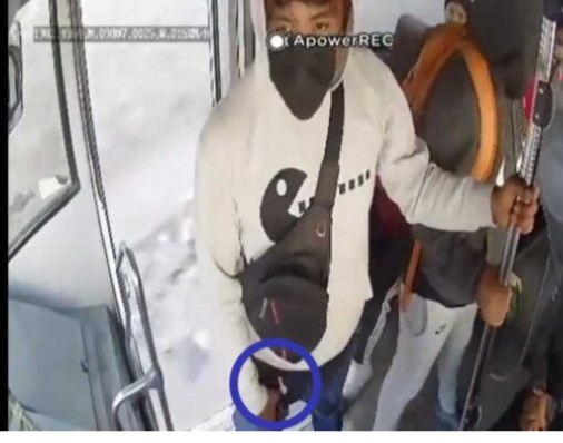 En el vídeo grabado por la cámara de vigilancia del transporte, se observa a un sujeto de sudadera blanca esperar junto al chofer, mientras sus compañeros despojan a los pasajeros de sus pertenencias.