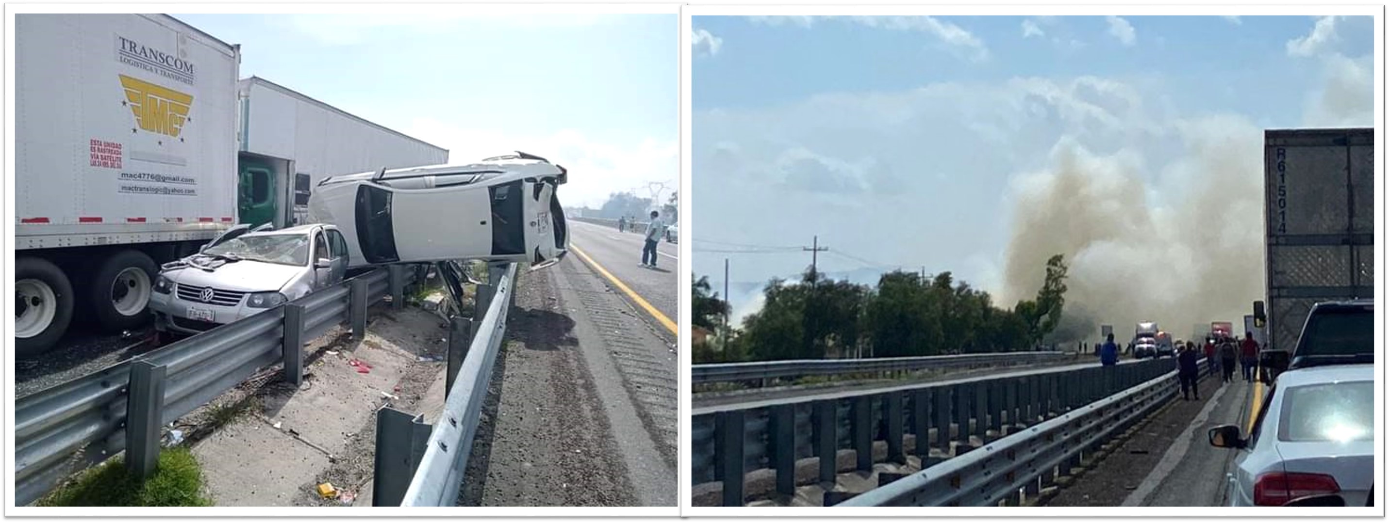 En videos que circulan en redes sociales se aprecia que el humo de la quema de pastizales nubló el camino de ese tramo, por lo que se presume que eso fue lo que ocasionó el incidente.