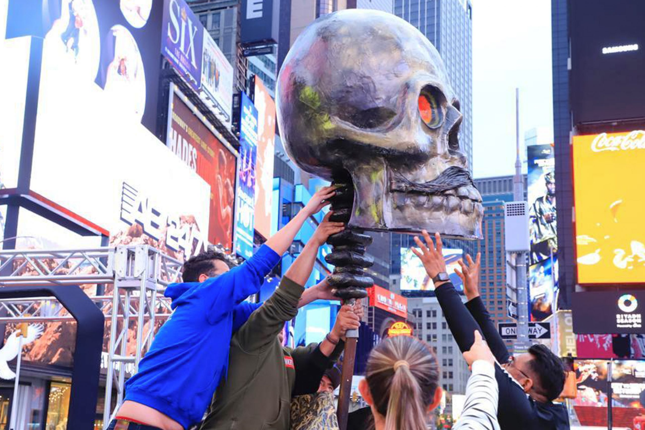 Atlixco, Pue.- Con motivo del "Día de Muertos", el gobierno estatal, mediante la Secretaría de Turismo y, en coordinación con el Ayuntamiento de Atlixco, instaló cuatro catrinas monumentales, así como esculturas de un charro y un diablito de más de 4 metros de altura en Times Square, sitio ubicado en la ciudad norteamericana.