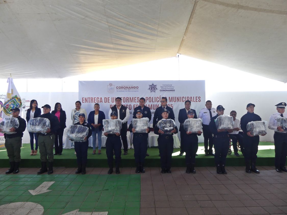 Coronango, Pue.- Fortalecer la seguridad es un compromiso que también implica mejorar las condiciones de los elementos, afirmó el presidente municipal de Coronango, Armando Aguirre al entregar 70 uniformes a las y los policías.