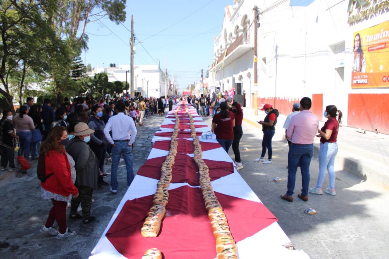 En el zócalo de Tecamachalco, autoridades municipales encabezaron los festejos por el Día de Reyes y realizaron la partida de rosca "Monumental", donde adultos y niños de todas las edades disfrutaron de una rebanada acompañada de una bebida caliente.