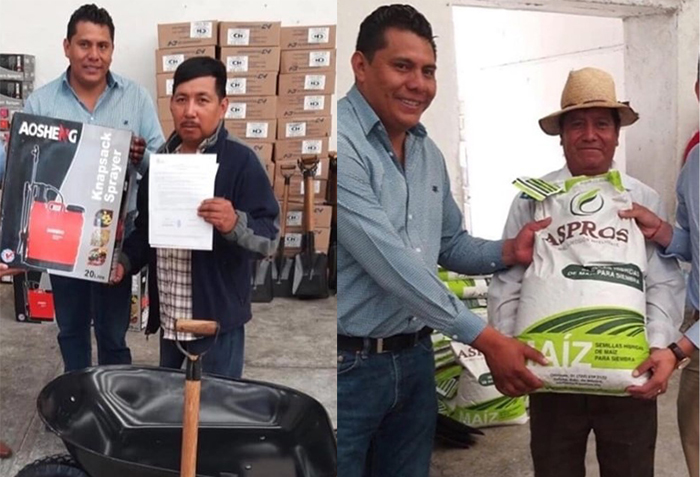 El alcalde municipal de Acajete, Roberto Ramírez Cervantes, así como el delegado de Gobernación, Alfonso Méndez Merino entregaron estos apoyos a los productores del municipio. Destacaron que con estos apoyos a través de la Secretaría de Desarrollo Rural se cumple con la meta de duplicar el apoyo, a comparación de años anteriores. También se entregan herramientas como: carretillas, palas, fumigadoras y machetes.