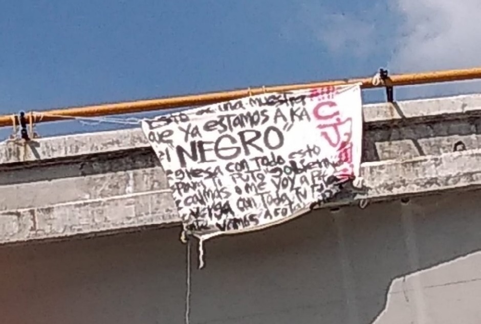 “Llegó la limpia pinche gobierno de mierda, es el primer aviso. ‘El Negro’ viene con todo. ATTE: CJNG”, podía leerse en la manta que fue retirada del lugar y resguardada por la Fiscalía General del Estado.