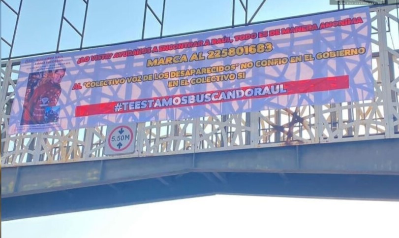 Amozoc, Pue.- Este domingo familiares de Guillermo Raúl López Escobedo, desaparecido desde diciembre de 2023, colocaron lonas en puentes peatonales de Amozoc para intensificar su búsqueda.