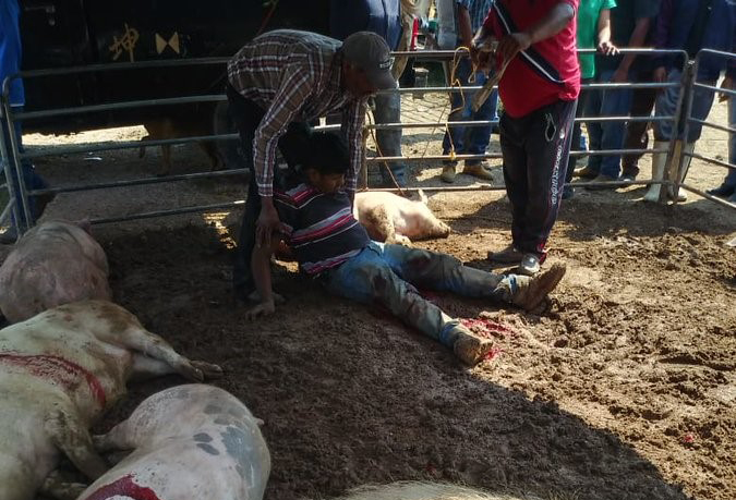 Según los primeros reportes, el hecho se registró cerca de las 11:00 horas cuando un hombre disparó en las piernas a un comerciante dedicado a la venta y crianza de cerdos de aproximadamente 28 años de edad, y posteriormente le disparó a cinco cerdos.