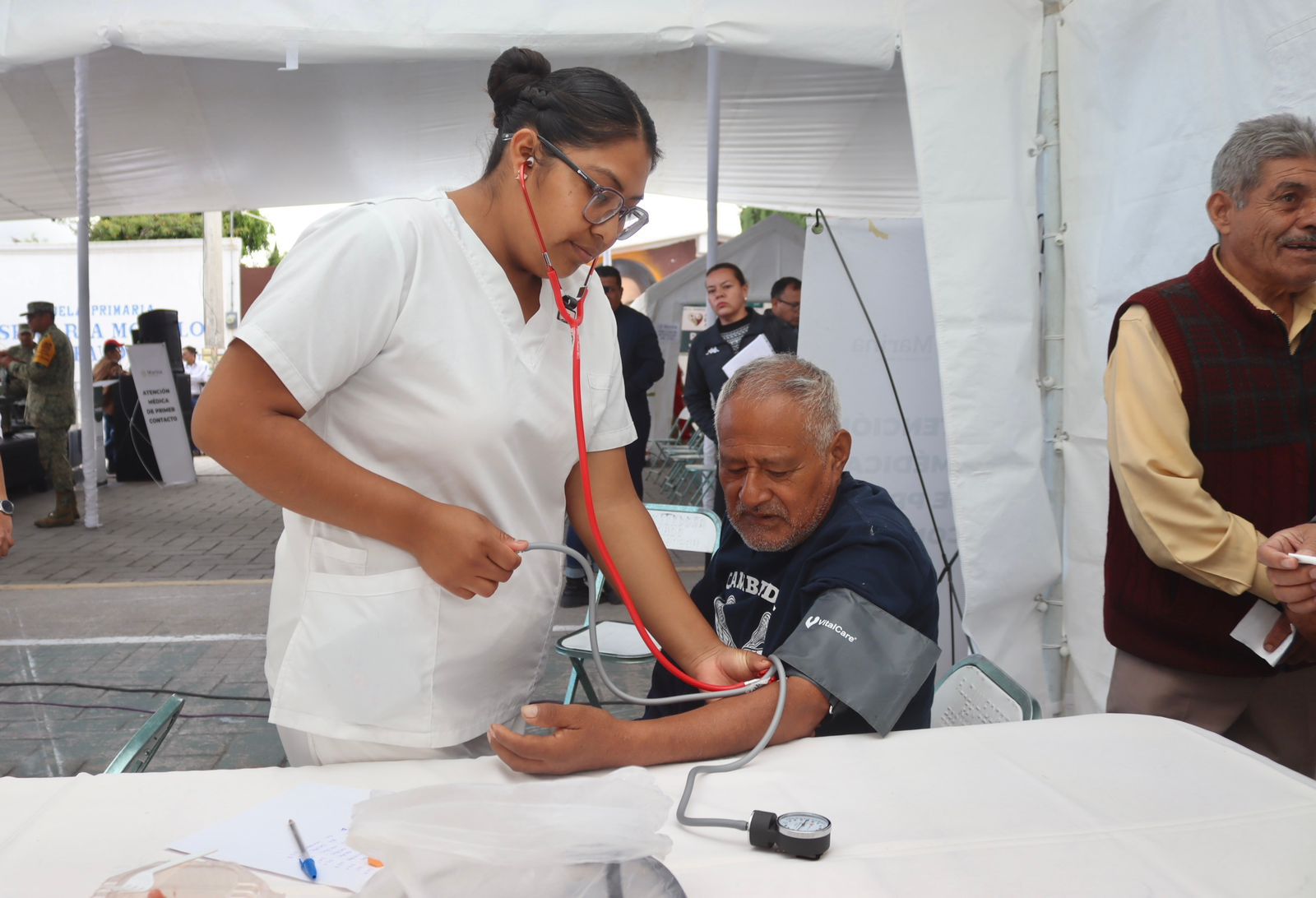 El edil destacó que esta Mega Jornada representa un hecho sin precedentes, al contar con la presencia y colaboración de personal de la Secretaría de Marina, la Secretaría de la Defensa Nacional, el IMSS, Bienestar, y diversas dependencias de los tres órdenes de gobierno, trabajando en unidad con un mismo objetivo: brindar atención médica directa, digna y oportuna a la población.