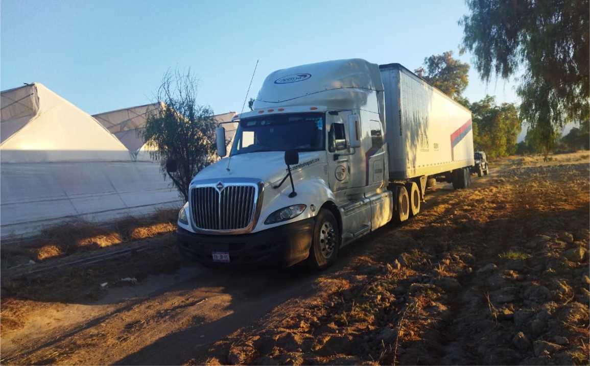 Con lo que respecta a la primera unidad, esta fue localizada en terrenos de cultivo y se trató de un tractocamión marca International color blanco con placas de circulación 21-AL-6T del servicio público federal que transportaba una caja seca color blanco, por lo que policías municipales la aseguraron luego de confirmar que tenía reporte de robo vigente.