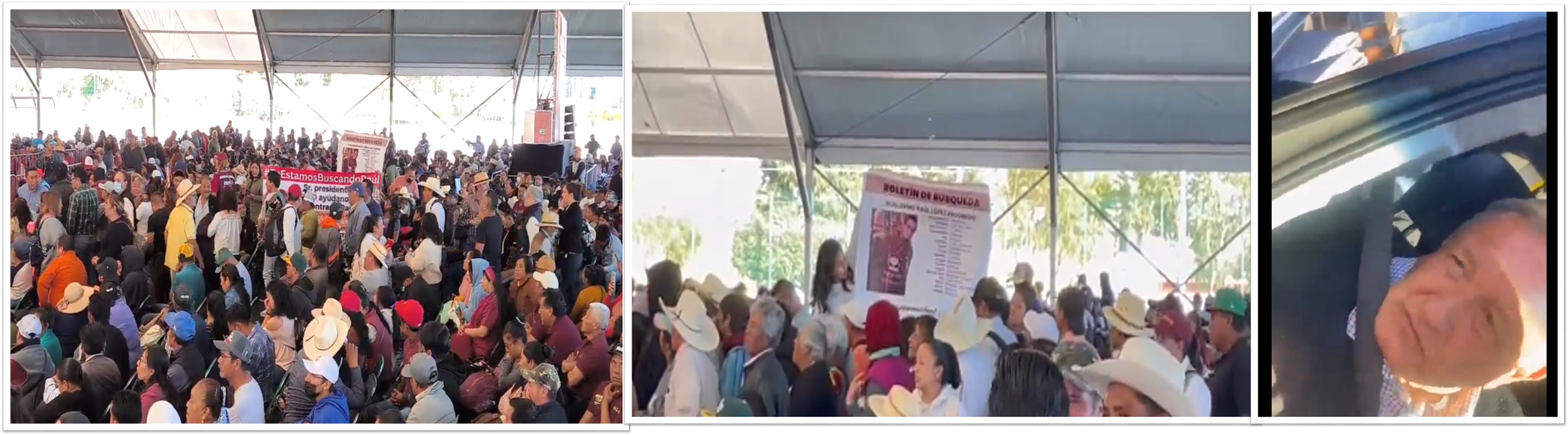 Tepeaca, Pue.- Previo al evento donde estuvo presente el mandatario de la nación, Andrés Manuel López Obrador, un grupo de personas, a través de unas lonas piden ayuda al presidente para localizar al joven Guillermo Raúl López Escobedo, desaparecido en Amozoc el pasado 28 de diciembre.