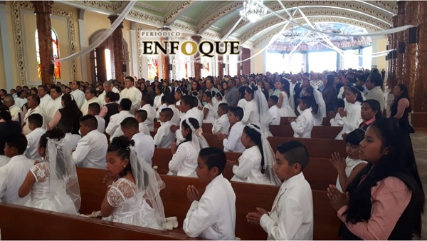 El Arzobispo de Puebla, monseñor Víctor Sánchez Espinosa, acompañado por el párroco Amando Castro Chiquito realizaron la celebración eucarística de primeras comuniones y confirmaciones en la parroquia de Santiago Acatlán.