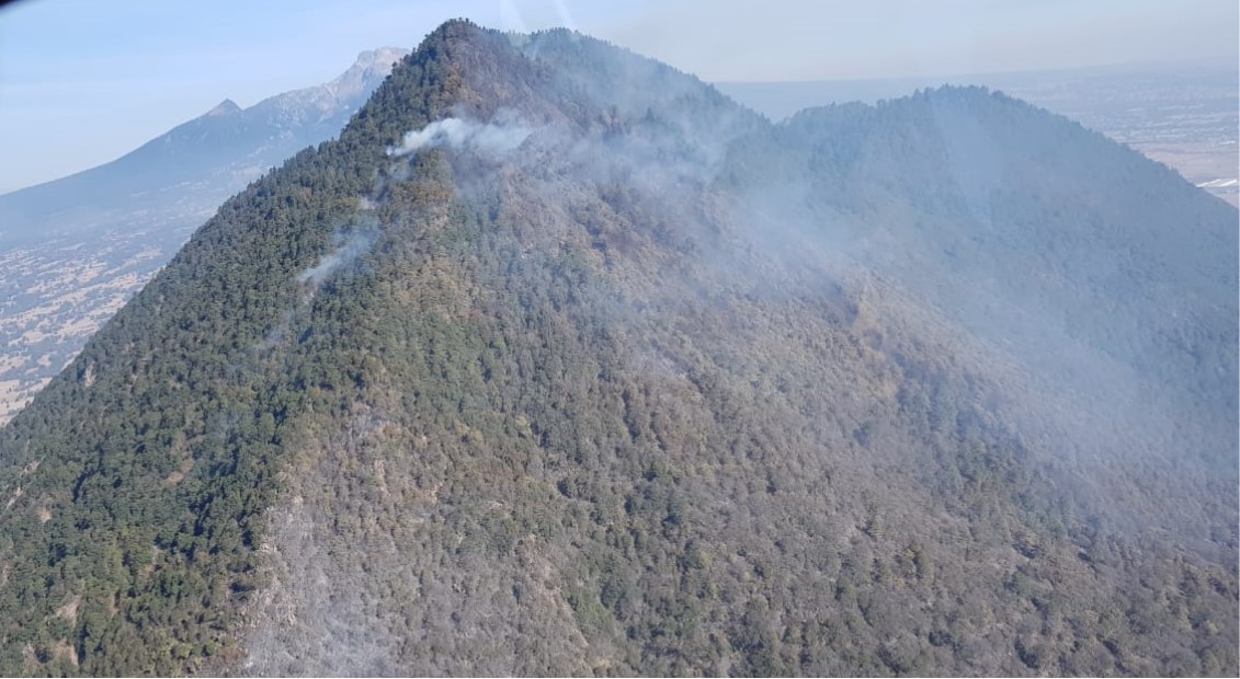 Acajete, Puebla. Gobierno del Estado en coordinación con la Comisión Nacional de Áreas Protegidas (CONANP), Comisión Nacional Forestal (CONAFOR), Protección Civil Municipal de Acajete, así como el coordinador estatal de Protección Civil realizan acciones para combatir el incendio forestal en cerro “El Rincón Citlaltepetl”, atrás del cerro “El Pinal”