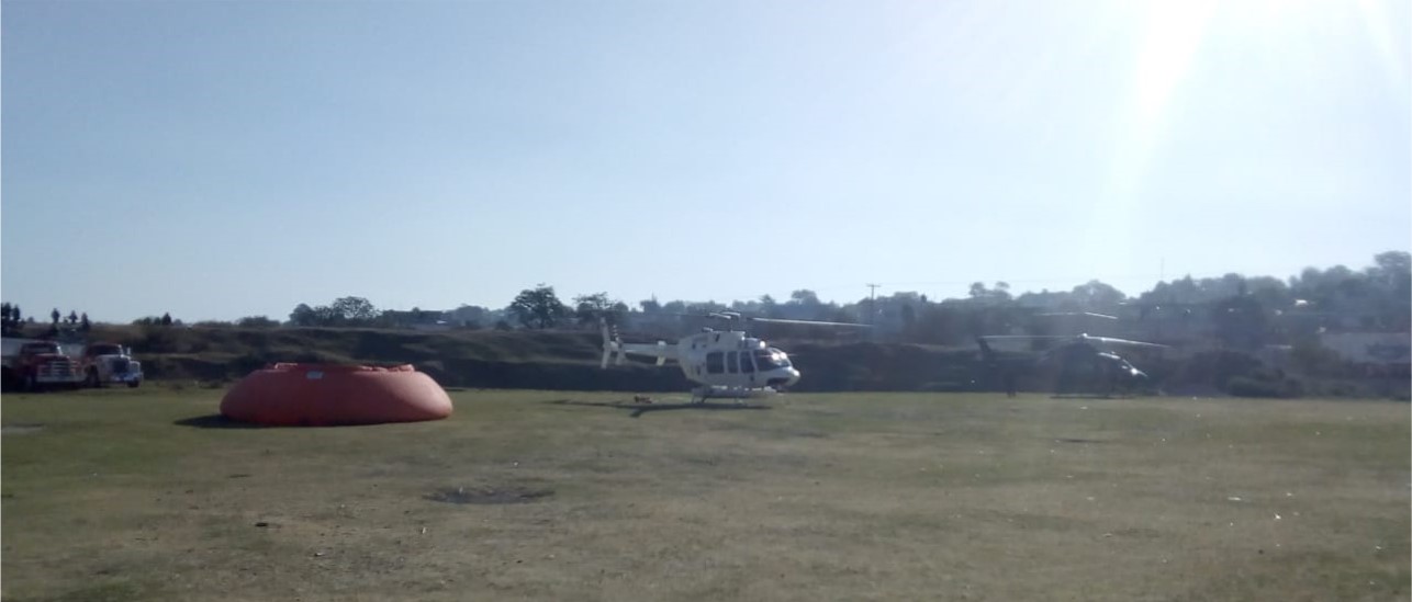 Dos aeronaves, bajo convenio de Gobierno del Estado se encuentran atendiendo el incendio de “El Rincón Citlaltépetl”, el helicóptero blanco realiza acciones de combate, mientras que el de la policía (negro) se enfocará al traslado de personal.