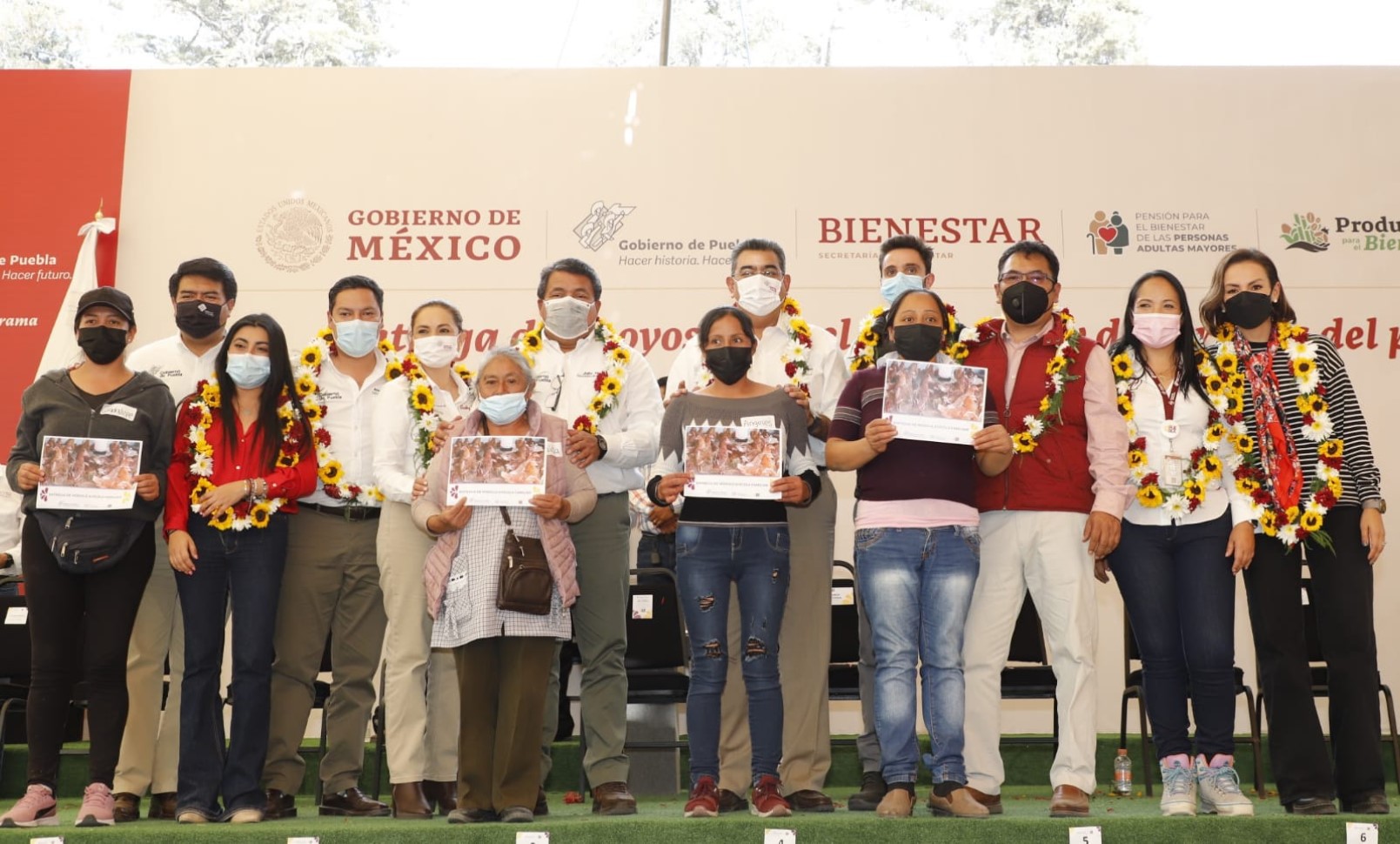Acajete, Pue.- Al realizar una gira de trabajo en los municipios de Rafael Lara Grajales y Acajete, el gobernador Sergio Céspedes Peregrina realizó la entrega de mil 035 apoyos estatales para el bienestar (producto lácteo, módulos alimentarios, módulos avícolas familiares, calentadores solares, electrificación y acciones de vivienda) y 4 mil 064 tarjetas federales de Pensión para el Bienestar de Personas Adultas Mayores y del programa Producción para el Bienestar.