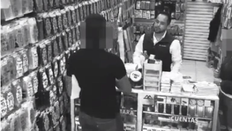 En el video, capturado por cámaras de seguridad, se ve cómo un joven llegó al comercio a exigir el pago de un supuesto derecho de piso, el cual habría sido ordenado por Jaime Aureoles, secretario de Desarrollo Económico de la entidad poblana.