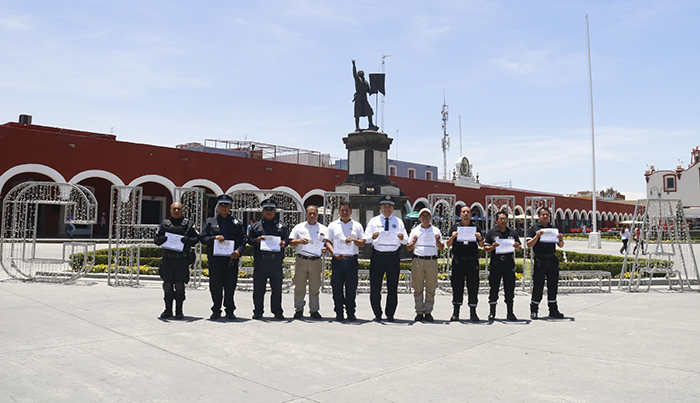 San Pedro Cholula, Pue. Por salvar la vida de una pequeña que se atragantó, por sofocar 49 incendios y por la efectividad en 37 detenciones durante el mes mayo, el cabildo de San Pedro Cholula entregó estímulos a diez elementos de la Secretaría de Seguridad Ciudadana.