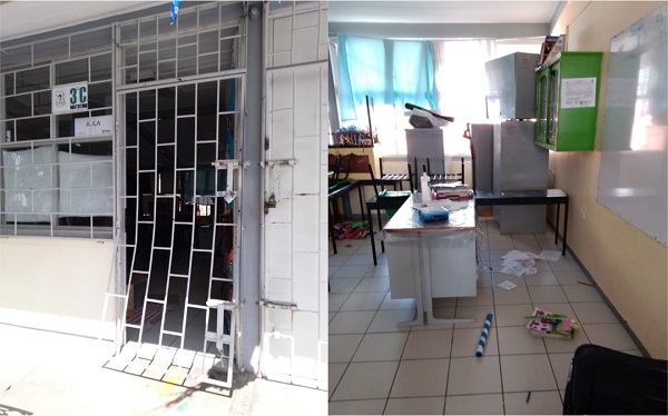 También acusaron que los amantes de lo ajeno hicieron destrozos al interior del plantel, lograron forzar las rejas e ingresar a uno de los salones.