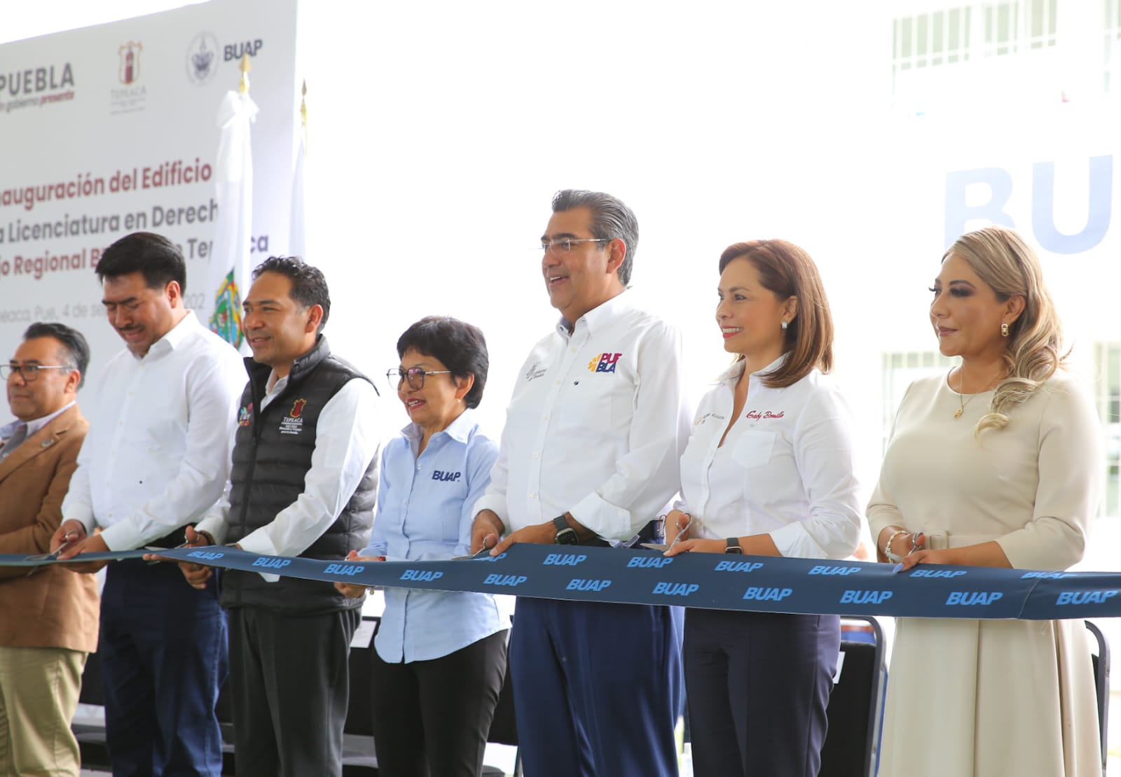 TEPEACA, Pue. - Como parte de las acciones para favorecer a las siguientes generaciones, garantizar el acceso a la educación e impulsar el desarrollo educativo universitario, el gobernador Sergio Salomón, en compañía de la rectora de la BUAP, Lilia Cedillo Ramírez, presidió la inauguración del edificio para la licenciatura de Derecho en el Complejo Regional de este municipio.