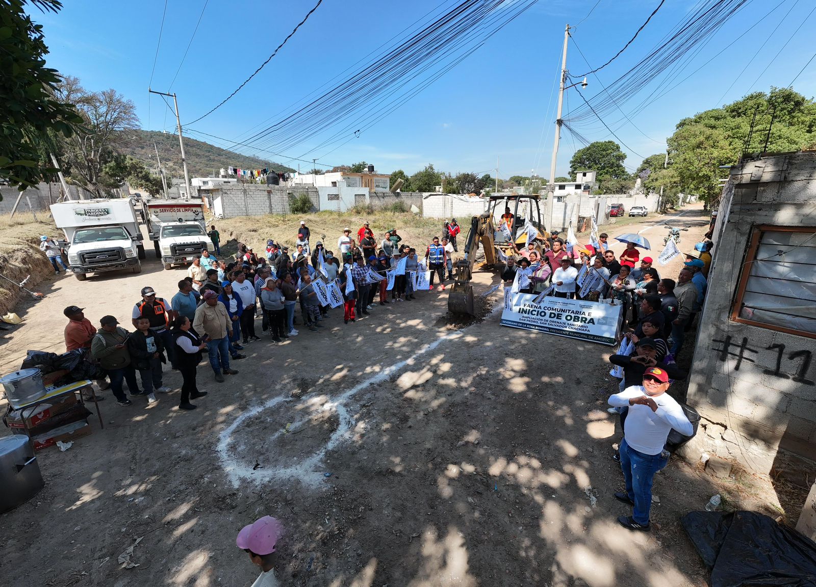 Posteriormente, el edil, acompañado de regidores y directores, dio el banderazo de inicio de obra de lo que será la construcción de aproximadamente un kilómetro de drenaje sanitario en beneficio de las y los habitantes de la zona.