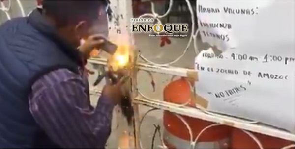 Después de que todo el personal fue retirado de las instalaciones, pobladores colocaron soldadura a la entrada principal de la comuna, y así mantendrán hasta que el edil atienda sus exigencias.