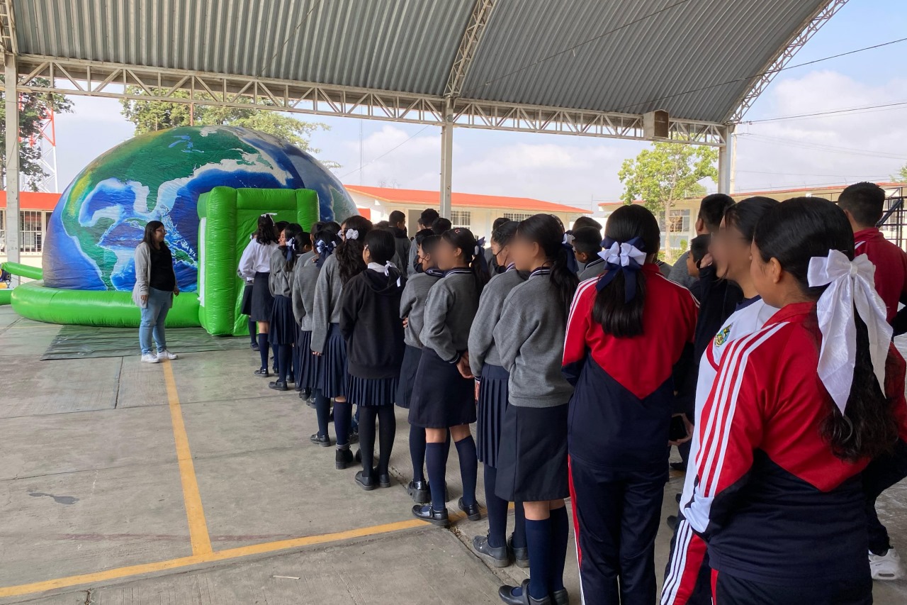 Acajete, Pue.- La Comisión Estatal de Agua y Saneamiento (CEASPUE) realizó las actividades del “Domo del Agua” y juegos lúdicos en la escuela secundaria “General Emiliano Zapata” del municipio de Acajete, pues bajo la indicación del gobierno del estado de Puebla que preside Alejandro Armenta Mier, se busca promover la cultura del cuidado y saneamiento del agua desde la niñez.