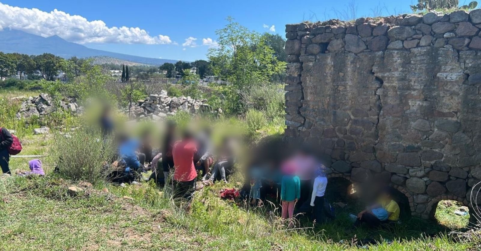 Se trata de 28 mujeres y hombres mayores de edad y 13 menores de edad acompañados, abandonados en ese sitio por los denominados polleros.