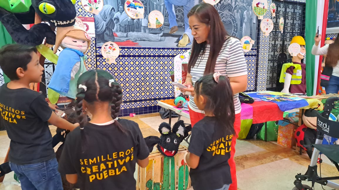 Atlixco, Puebla.- La presidenta municipal, Ariadna Ayala, inauguró una exposición donde niñas, niños y jóvenes integrantes de los Semilleros Creativos de Atlixco, muestran su talento, a través de los trabajos realizados en este programa que contribuye a la intervención positiva de los entornos donde se encuentra, mediante expresiones artísticas en espacios públicos.