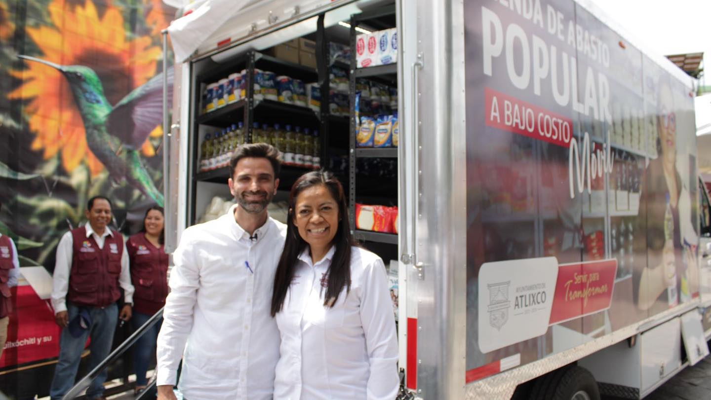 Atlixco, Pue.- Continuando con la generación de acciones que abonan a la transformación del municipio y de alto impacto social, la presidenta municipal de Atlixco, Ariadna Ayala dio el banderazo a la nueva "Tienda de Abasto Popular Móvil", a fin de acercar este servicio que nutre a bajo costo la canasta básica de las familias atlixquenses.