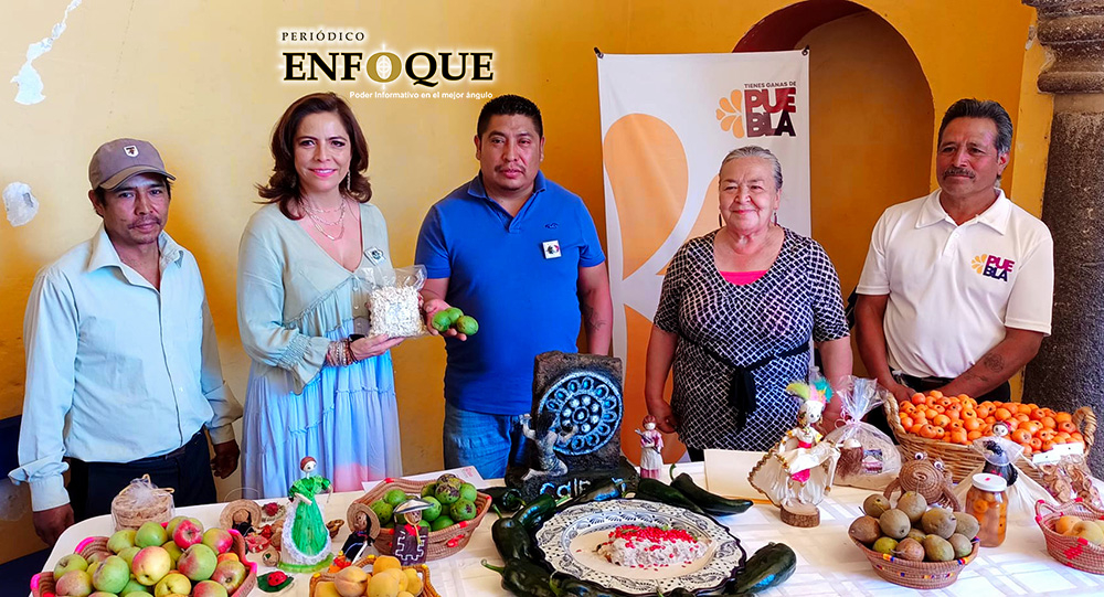 Olivia Salomón Vibaldo, secretaria de economía, ofreció apoyo con asesorías gratuitas en Calpan, Puebla, a productores de fruta y artesanos en la temporada “Chiles en Nogada”, la presentación la hizo en las instalaciones del ex Convento Franciscano.