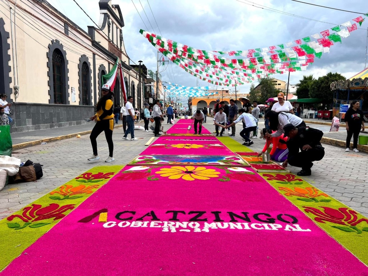 Agregó que esta actividad es “símbolo de fraternidad y de unión donde la gente se organiza y participa al hacer sus alfombras con aserrín como símbolo de veneración a la virgen” los que asisten pueden observar diversos diseños de alfombras, y que al final se realiza una misa en punto de las 7: 00 horas del día 15.