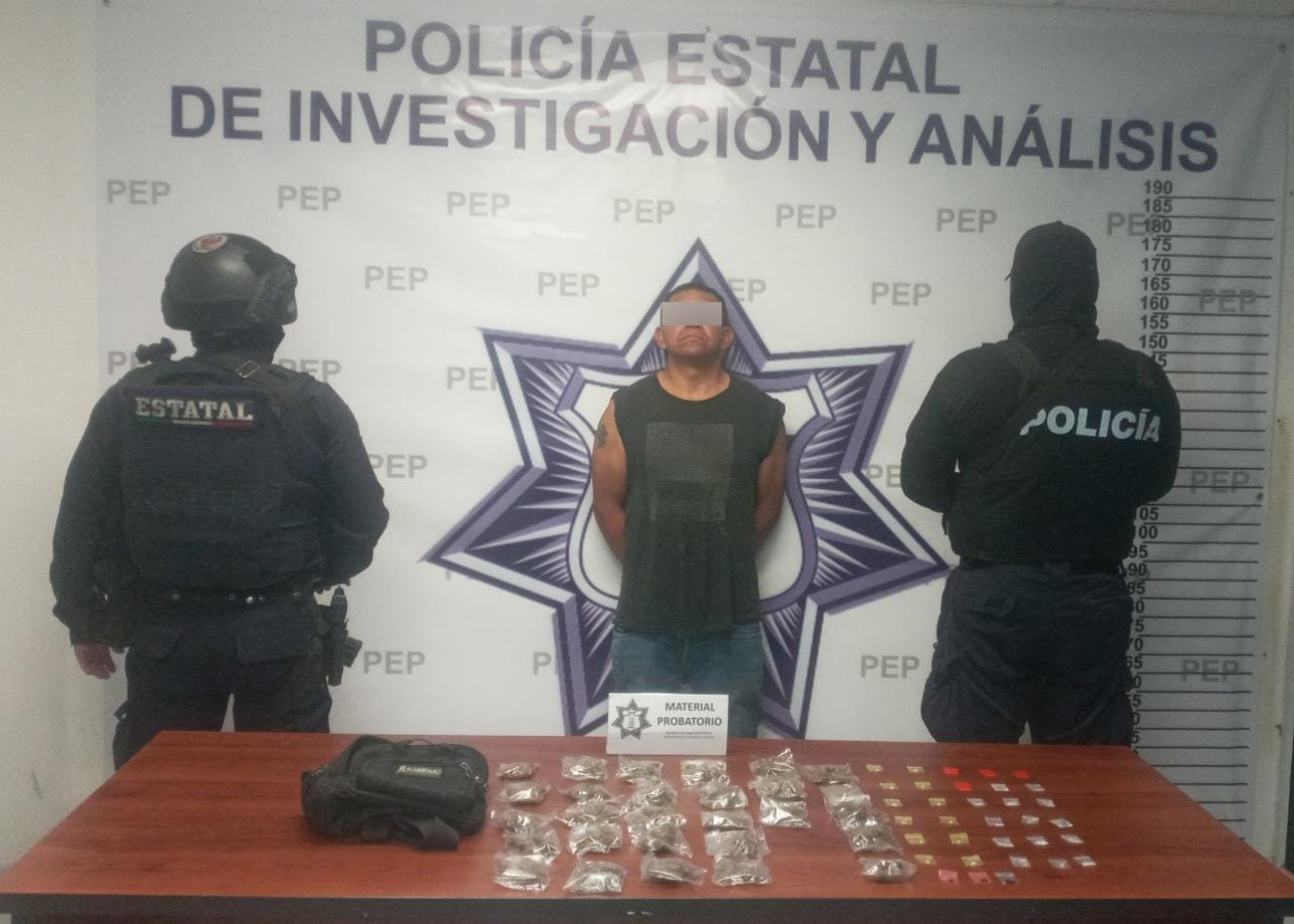 Nopalucan, Pue.- La Secretaría de Seguridad Pública (SSP) informó la detención de un presunto distribuidor de droga identificado como Manuel G., de 44 años.