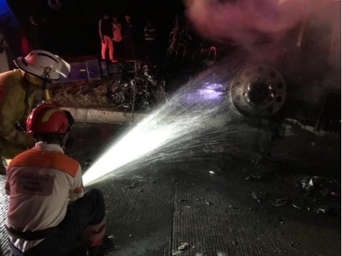 Al lugar llegaron autoridades municipales, estatales y federales para atender el incendio del tractocamión, sin embargo, se desconoce si hubo personas lesionadas.