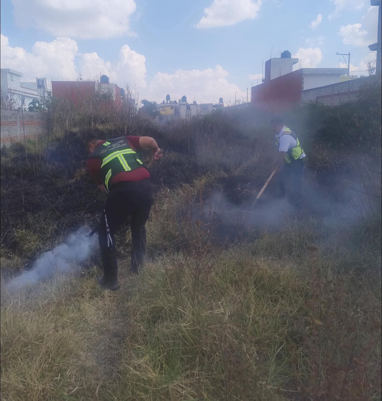 Cuautlancingo, Pue.– Elementos de la Dirección de Protección Civil atendieron de manera oportuna un incendio de pastizal registrado en la calle República de Alemania, ubicada en la colonia Villa Olímpica, evitando que la situación representara un riesgo mayor para la población y las viviendas cercanas.